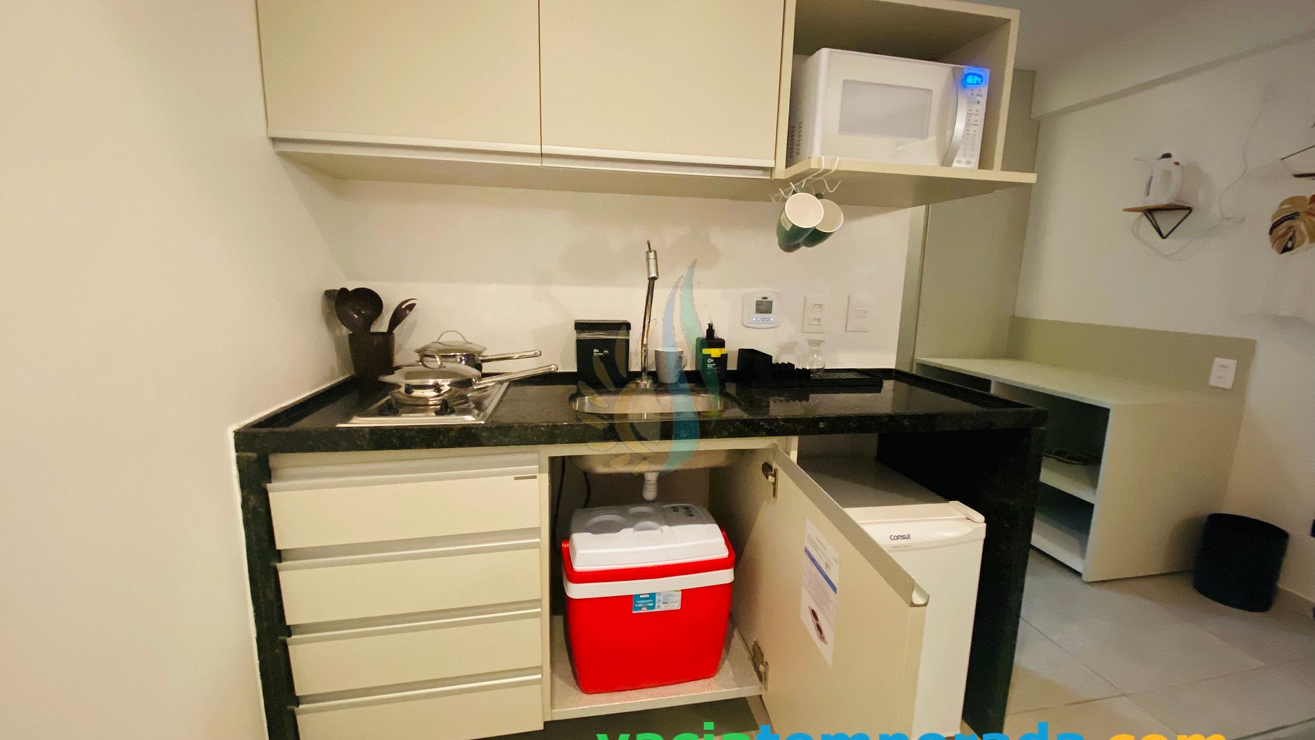 Live unforgettable moments in this unique and ideal place for families. Flat 719, with a privileged view of the sea, is located in the Ritz Suites Condominium with hotel services, including bed and bath linen (no daily change). The flat accommodates 4 people (including a child) with a queen bed, 2 single beds, TV, air conditioning, a mini kitchen with fridge, microwave, and basic utensils, wi-fi, safe and home office table . Close to shopping, supermarket and restaurants