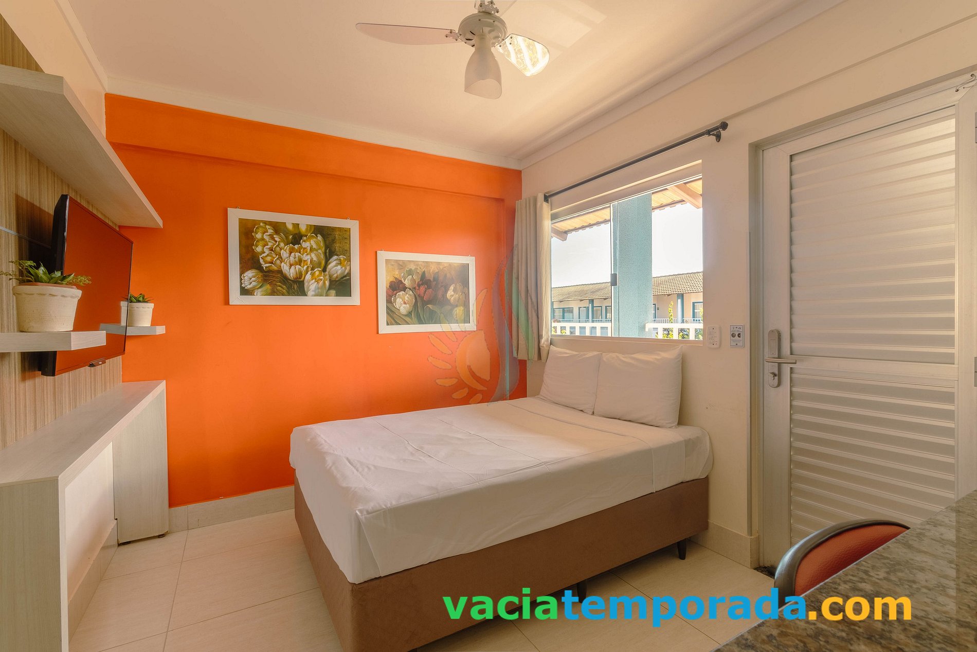 ✗ Sala temos Cama de casal e um Colchão extra de solteiro, ventilador de teto,TV 32"