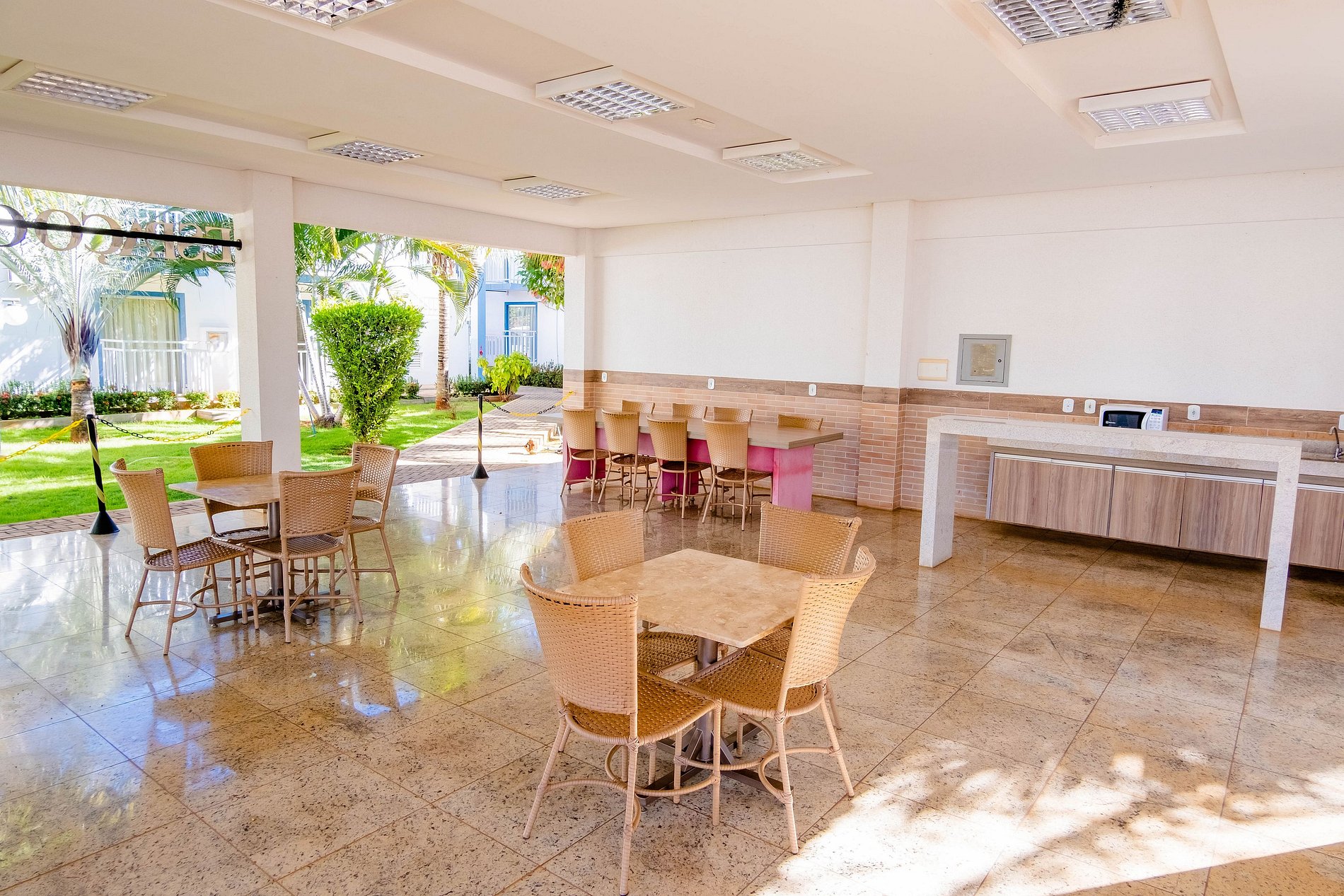 △ Não é permitido o acesso com bebidas e alimentos para área de lazer, PISCINAS salvo após 00:00h (meia noite), quando o bares são fechados. Contudo, não são permitidas bebidas em recipientes de vidro. O consumo de alimentos e bebidas é permitido no flat.