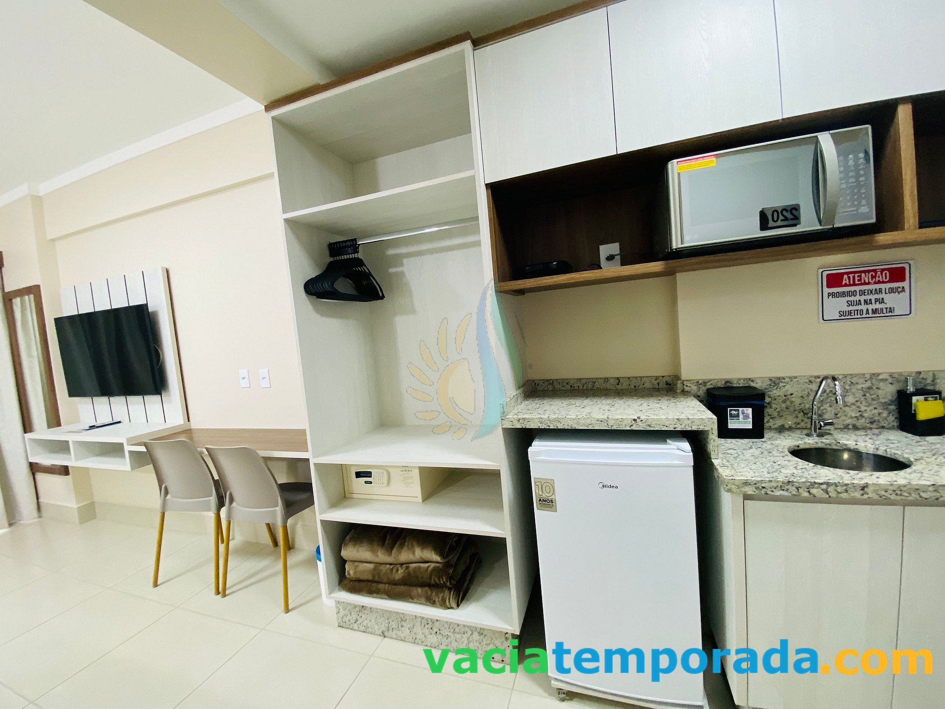 ✦ Manutenção do apartamento: Solicitação de manutenção deve ser direto na Recepção, tem horário para ser atendido no dia, (consulte a recepção).