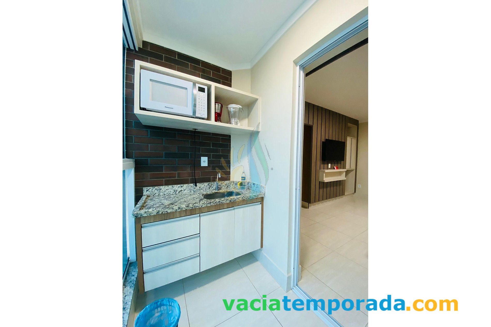 **Varanda gourmet: Geladeira ;lMicro-ondas ;Sanduicheira ;Cafeteira; Pratos, copos; talheres; Utensílios básicos de cozinha. (É proibido cozinhar no apartamento - Não tem fogão!)para rápidas refeições e lanches;
