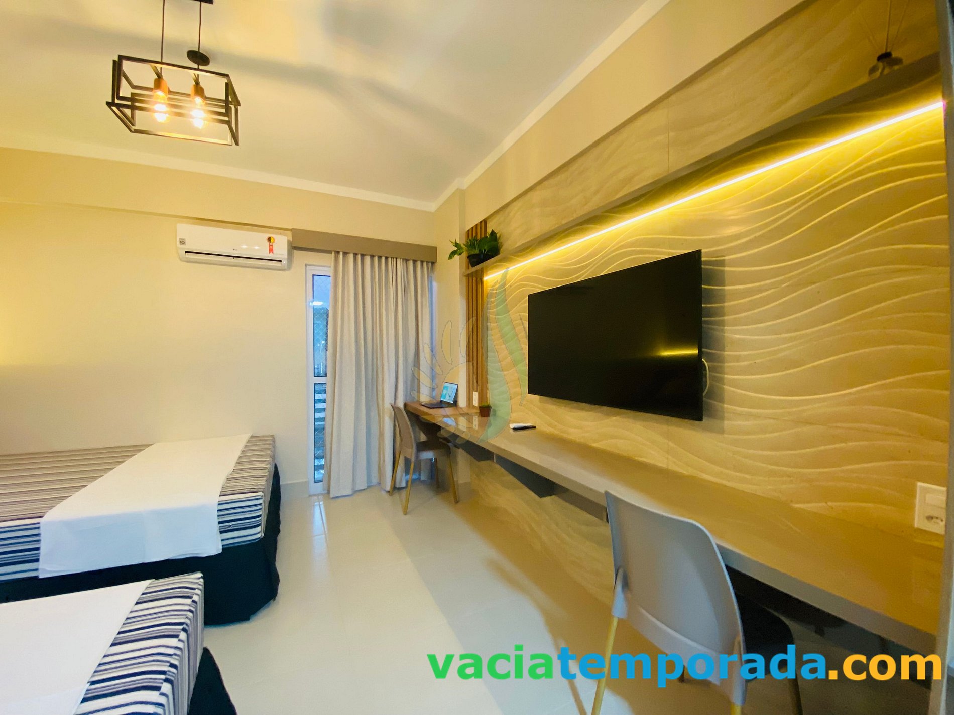 **Suite: cama de casal box queen size, cama de casal padrão, roupeiro, ar condicionado split, Roupa de cama e banho(SEM TROCAS DIARIAS) , Smart TV 50" , cofre digital;