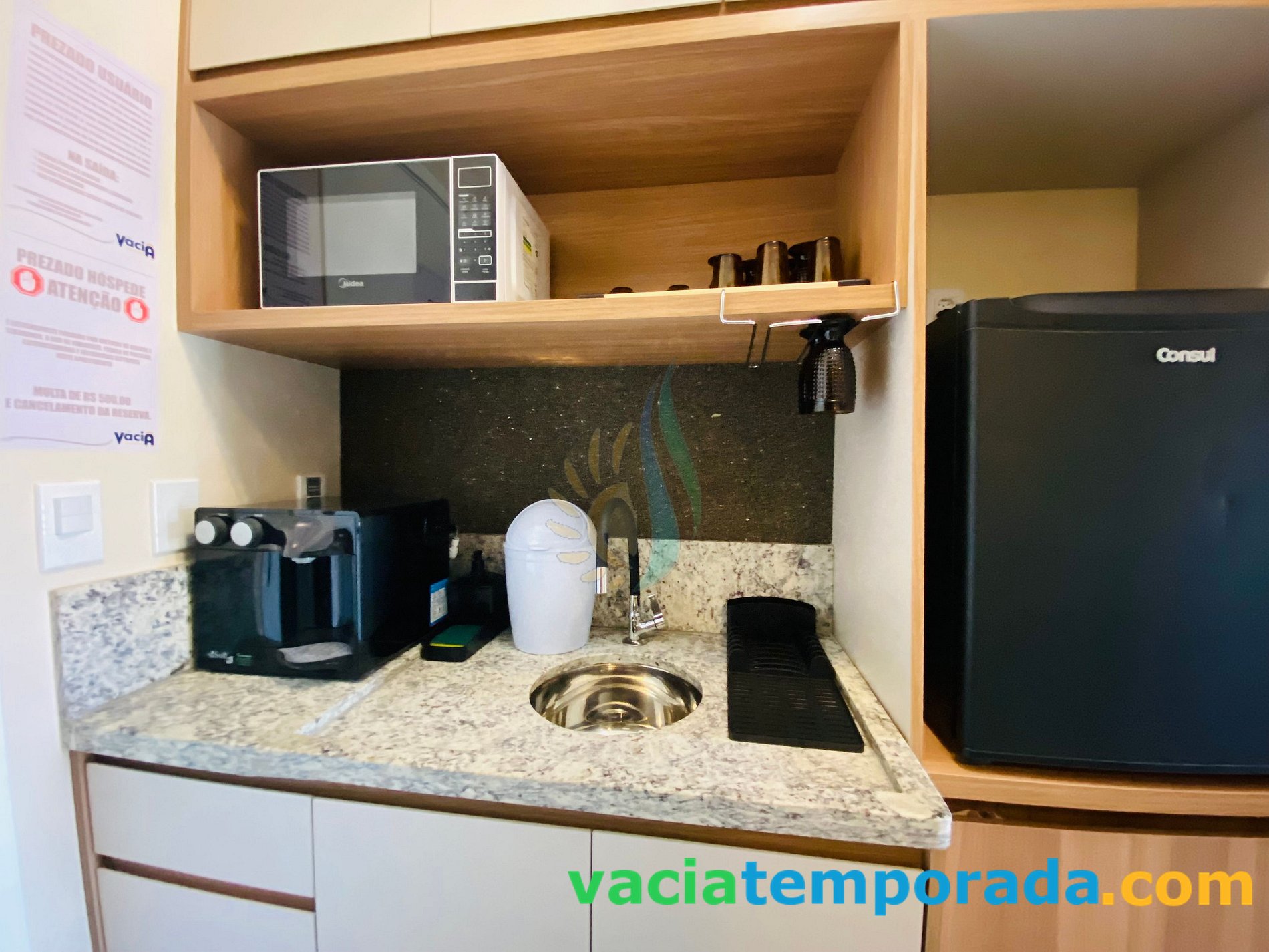 **Copa: frigobar ;Purificador de água gelada; Micro-ondas ;Sanduicheira ;Cafeteira; Pratos, copos, xícaras; talheres; Utensílios básicos para se fazer lanche. (É proibido cozinhar no apartamento (multa 30% valor condominio) Não tem fogão!