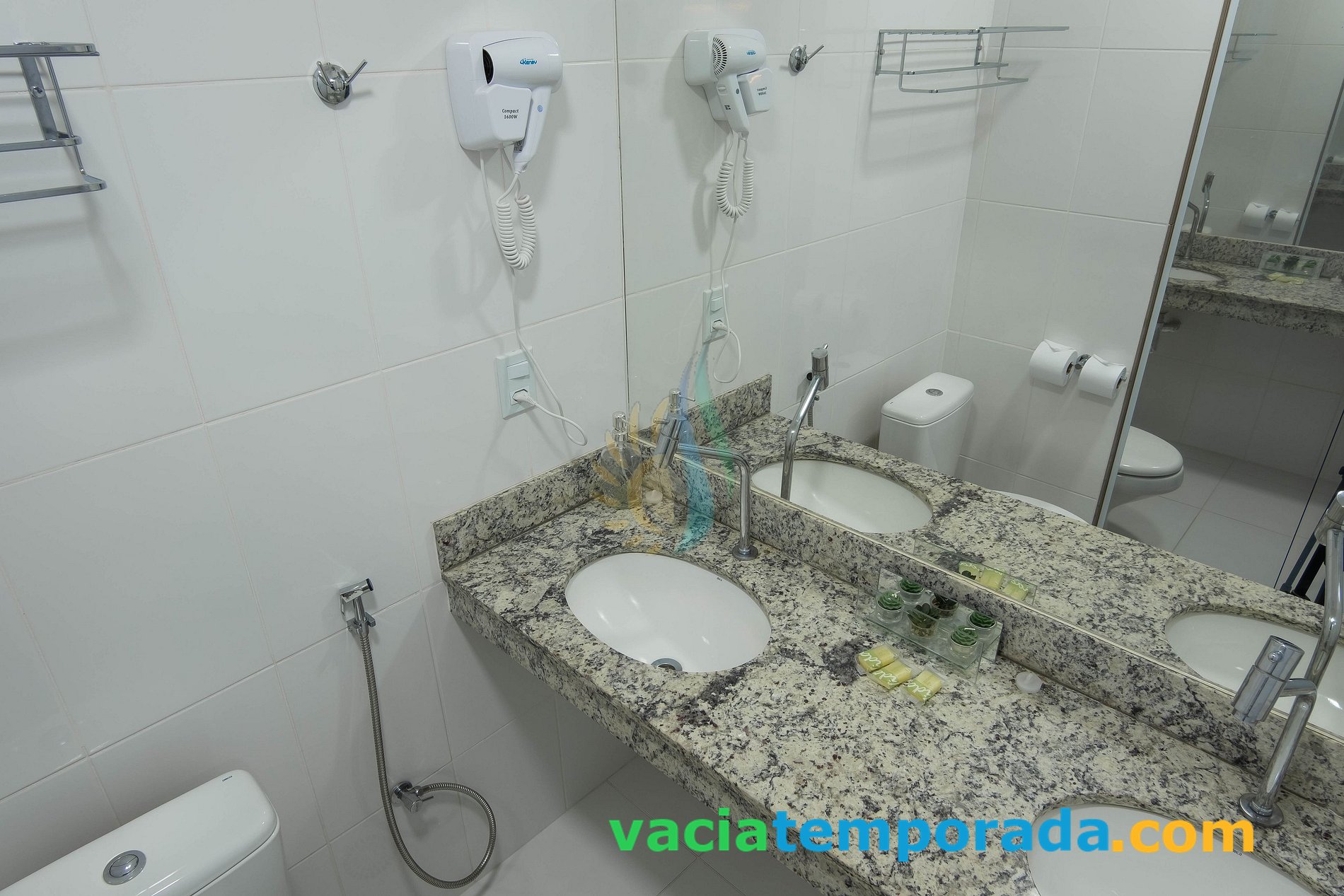 **Banheiro: com secador de cabelos,ducha hgiênica,sabonetes e papel higiênico;